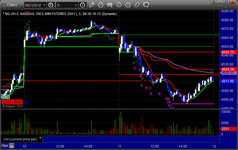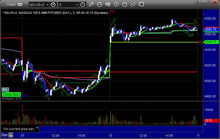 As usual, let's start by taking a look at the ES and NQ with our market directional lines, VWAP, and Comber on the 5-minute chart from today's session: