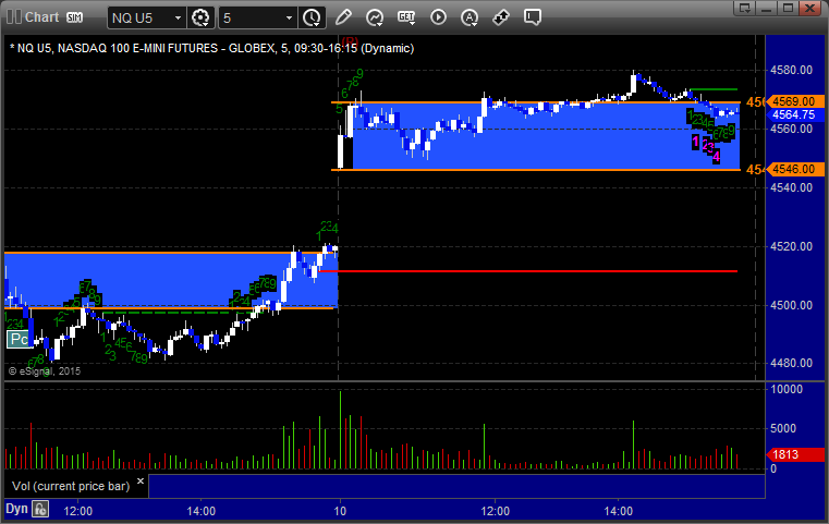 The markets gapped up on a Monday to start the week and never looked back. Frankly, they just drifted higher without much volatility and only covered about 2/3rds of average daily range. The ES barely touched one level for the session. The Opening Range plays did work though.