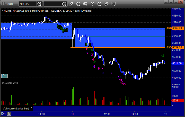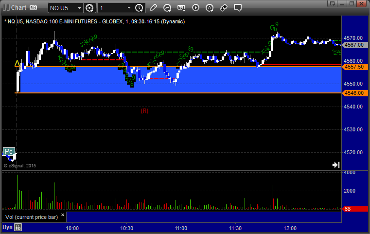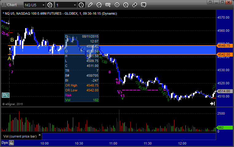 NQ Opening Range Play triggered short at A and worked enough for a partial. Triggered long at B and worked: