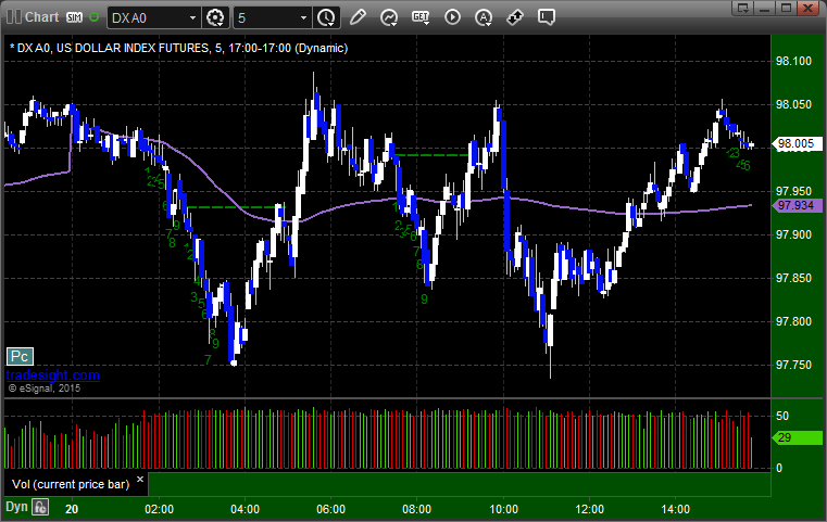 Here's a look at the US Dollar Index intraday with our market directional lines: