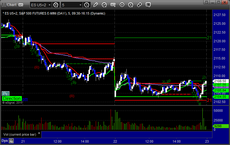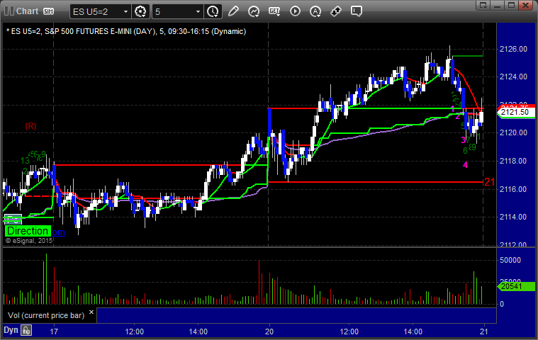 As usual, let's start by taking a look at the ES and NQ with our market directional lines, VWAP, and Comber on the 5-minute chart from today's session: