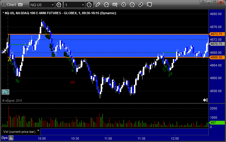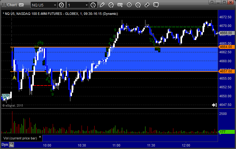 Another set of Opening Range play winners (see that section below) as the market opened fairly flat and stuck in about a 3 point range (after the first 5 minutes) for over an hour on the ES. We eventually drifted higher and then pulled back for the close. NASDAQ volume was 1.6 billion share.