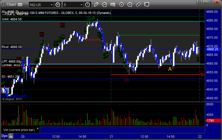 Triggered short at A at 4657.00 and stopped for 7 ticks: