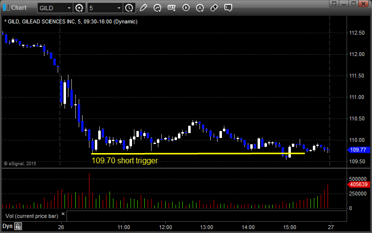 GILD triggered short (with market support) and didn't go enough either way to count: