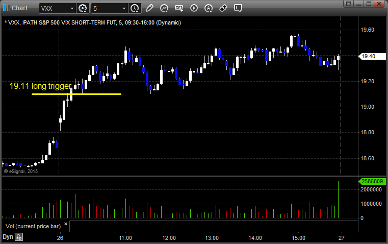 His VXX triggered long (ETF, so no market support needed) and worked: