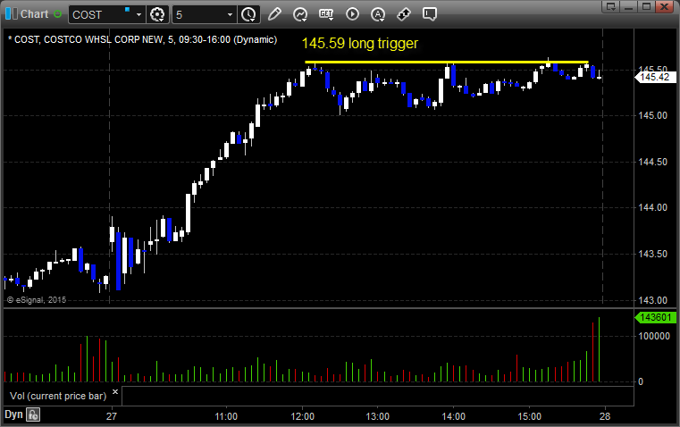 In total, that's 2 trades triggering with market support, both of them worked, and COST was a flat bust.