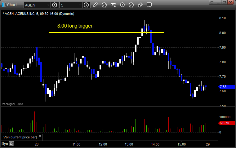 With each stock's recap, we will include a (with market support) or (without market support) tag, designating whether the trade triggered with or without market directional support at the time. Anything in the first five minutes will be considered WITHOUT market support because market direction cannot be determined that early. ETF calls do not require market support, and are thus either winners or losers.