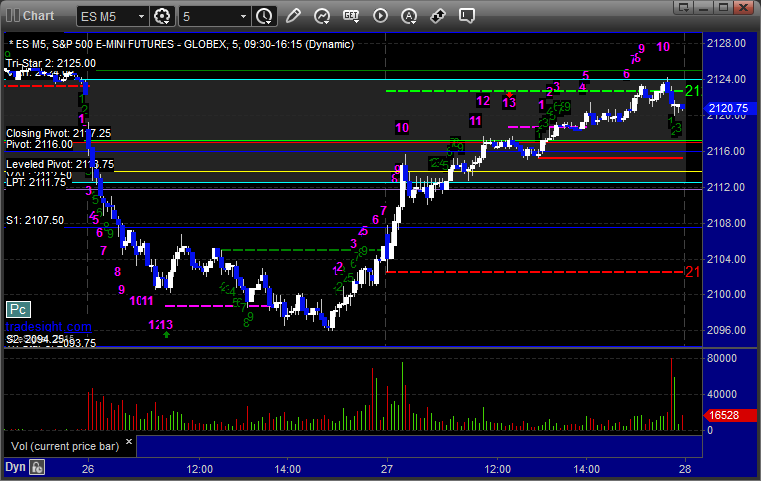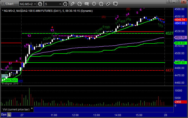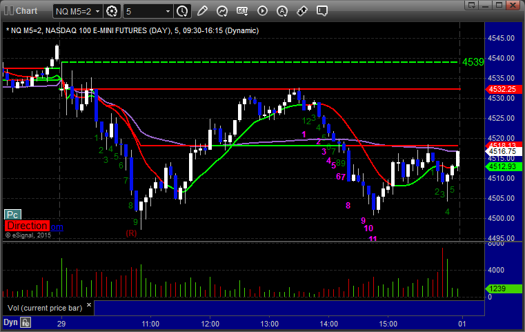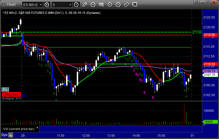 As usual, let's start by taking a look at the ES and NQ with our market directional lines, VWAP, and Comber on the 5-minute chart from today's session: