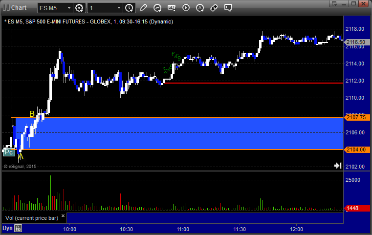 ES Opening Range Play triggered short at A and stopped, triggered long at B and worked great: