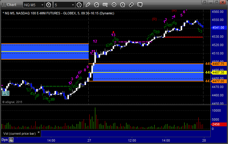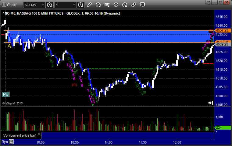 NQ Opening Range Play triggered long at A and worked. Triggered short at B and worked great: