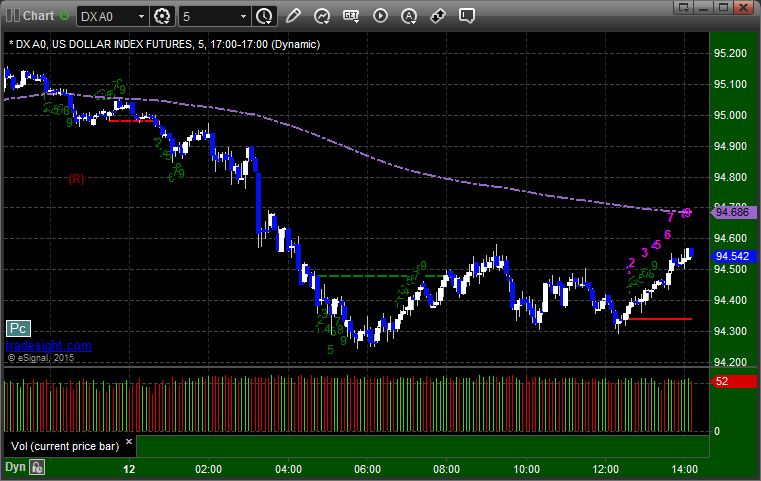 Here's a look at the US Dollar Index intraday with our market directional lines: