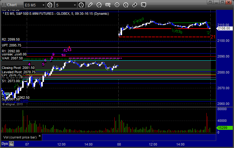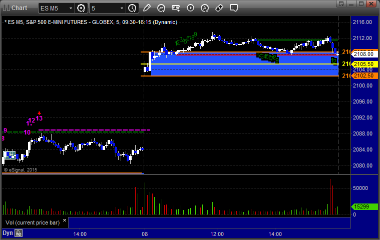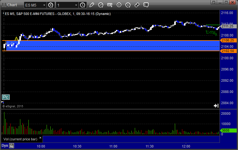 Triggered short at A at 2105.00 and stopped. Did not re-enter as volume was too light, but the retrigger would have worked: