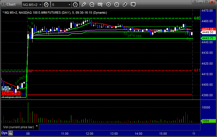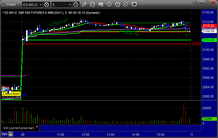 As usual, let's start by taking a look at the ES and NQ with our market directional lines, VWAP, and Comber on the 5-minute chart from today's session: