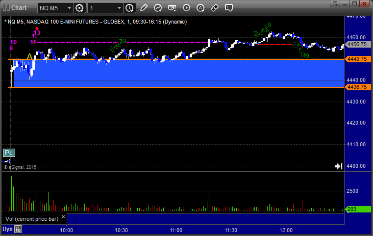 NQ Opening Range Play triggered long at A and worked enough for a partial:
