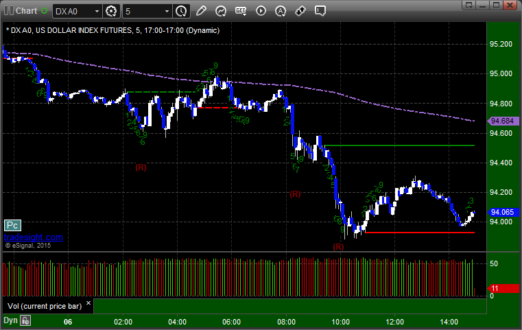 Here's a look at the US Dollar Index intraday with our market directional lines: