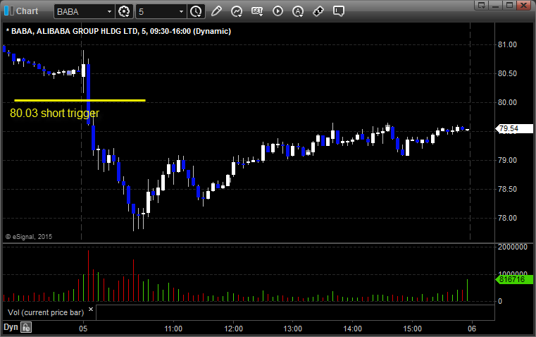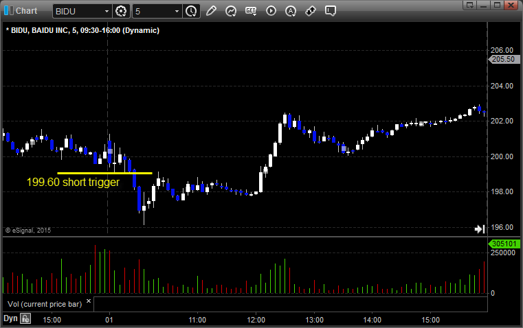 From the Messenger/Tradesight_st Twitter Feed, BIDU triggered short (with market support) and worked: