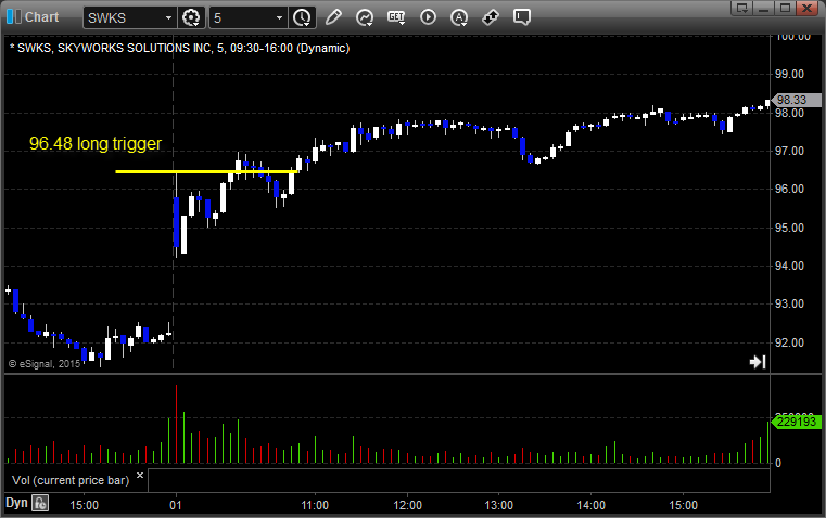 With each stock's recap, we will include a (with market support) or (without market support) tag, designating whether the trade triggered with or without market directional support at the time. Anything in the first five minutes will be considered WITHOUT market support because market direction cannot be determined that early. ETF calls do not require market support, and are thus either winners or losers.