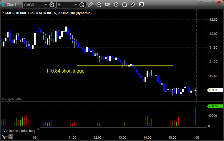 GMCR triggered short (with market support) and worked: