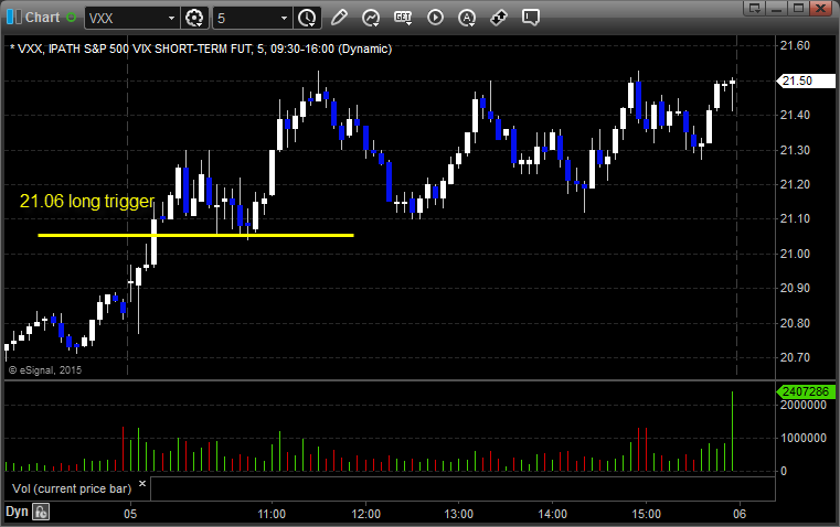 His VXX triggered long (ETF, so no market support needed) and worked: