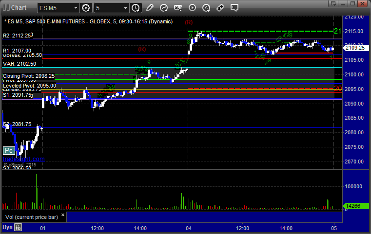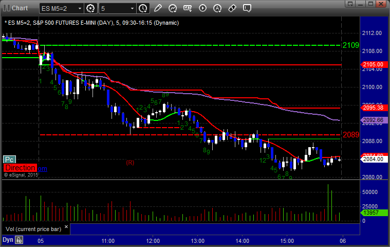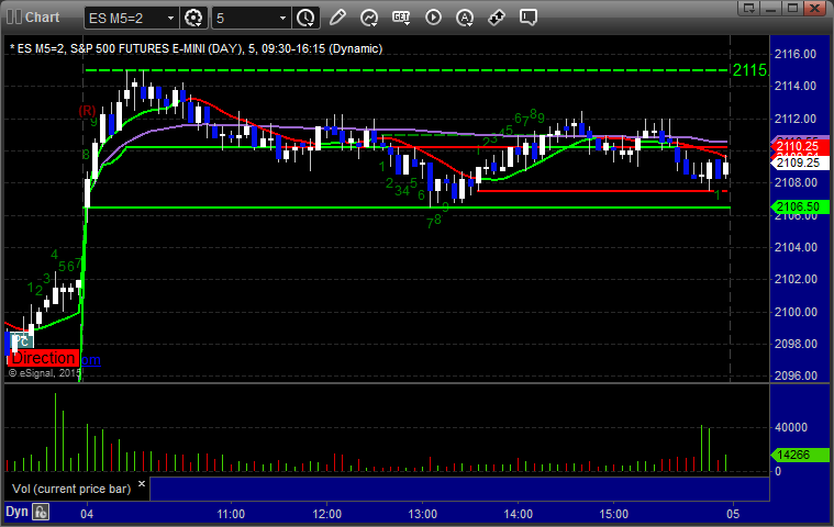 As usual, let's start by taking a look at the ES and NQ with our market directional lines, VWAP, and Comber on the 5-minute chart from today's session:
