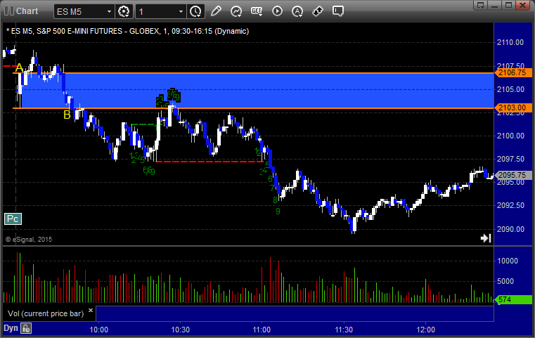 ES Opening Range Play triggered long at A and worked enough for a partial, triggered short at B and worked:
