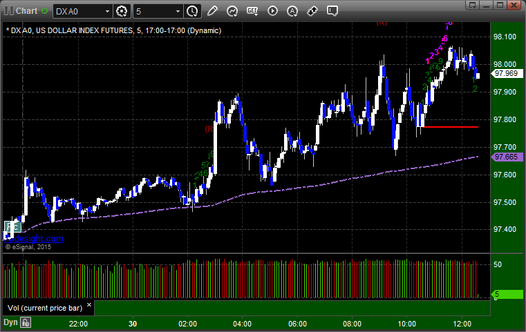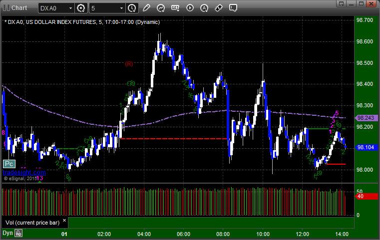Here's a look at the US Dollar Index intraday with our market directional lines: