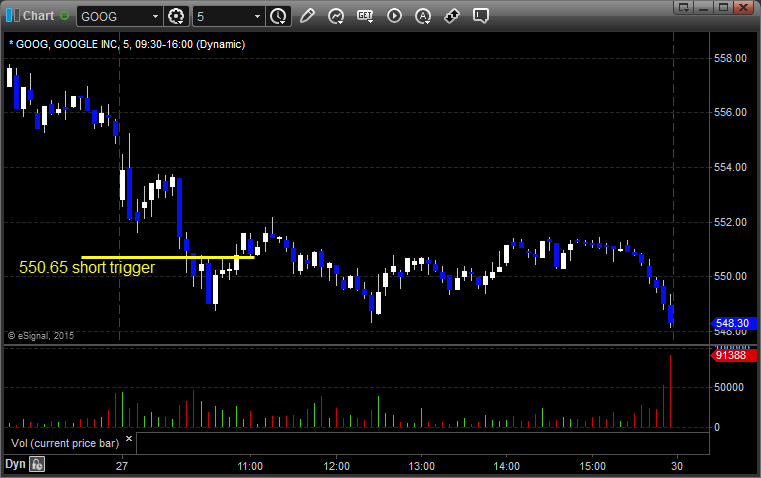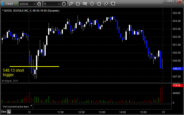 From the Messenger/Tradesight_st Twitter Feed, GOOG triggered short (without market support) and didn't work: