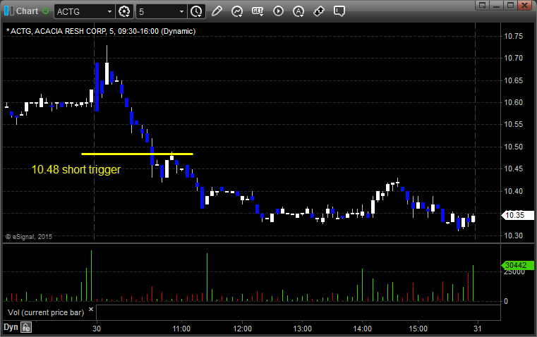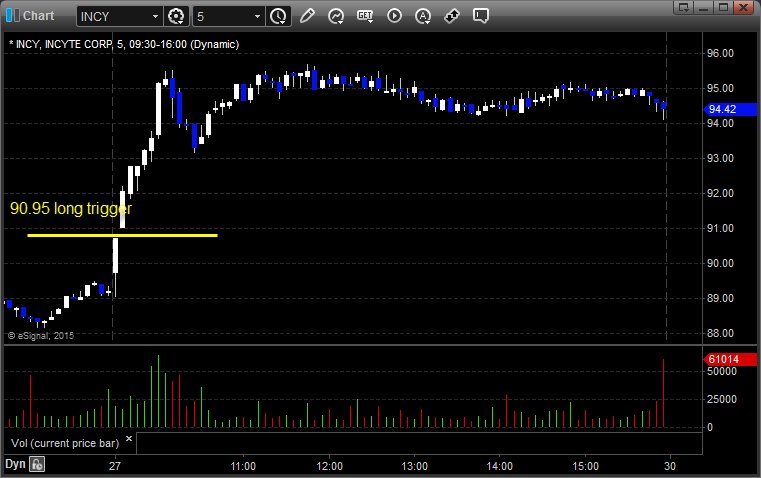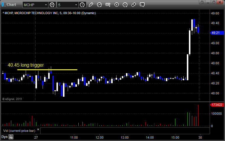 With each stock's recap, we will include a (with market support) or (without market support) tag, designating whether the trade triggered with or without market directional support at the time. Anything in the first five minutes will be considered WITHOUT market support because market direction cannot be determined that early. ETF calls do not require market support, and are thus either winners or losers.