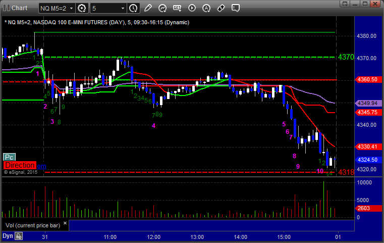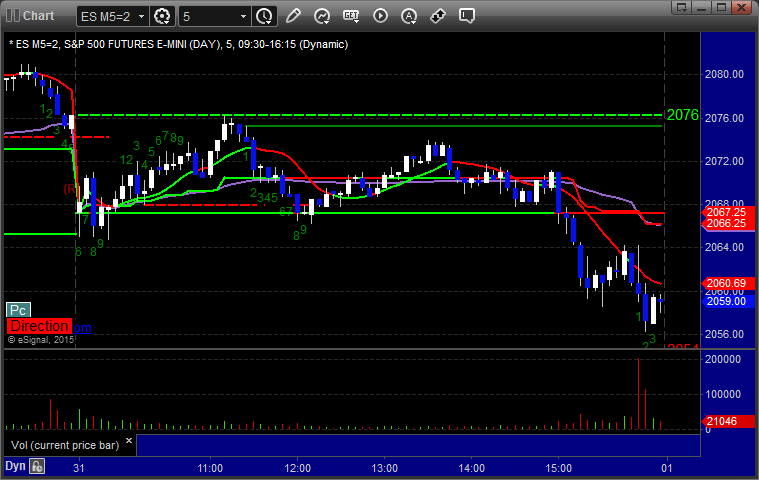 As usual, let's start by taking a look at the ES and NQ with our market directional lines, VWAP, and Comber on the 5-minute chart from today's session: