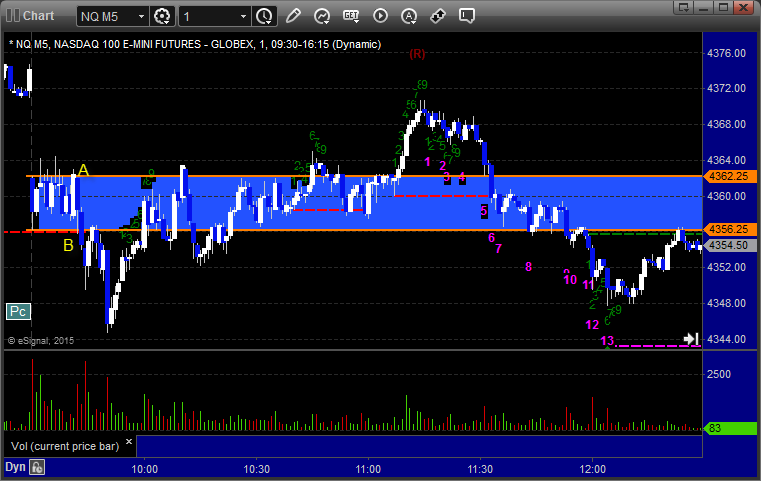 Triggered short at A at 4353.50, hit first target for 6 ticks, stopped second half over the entry: