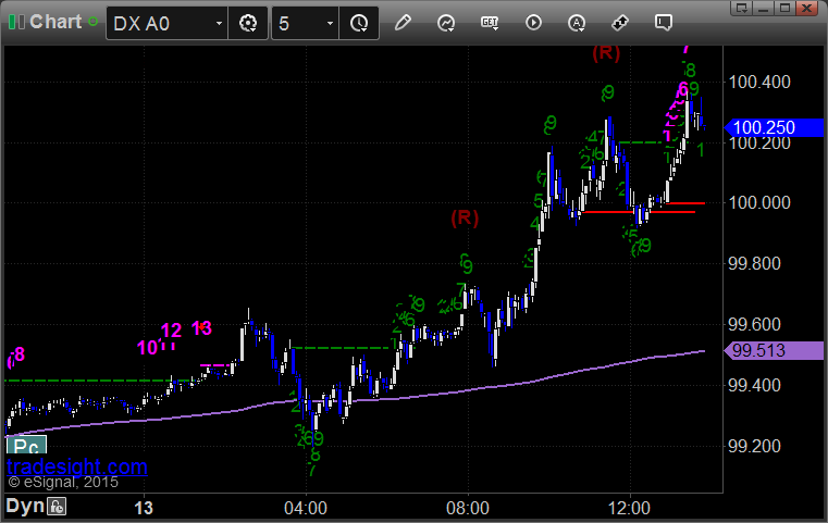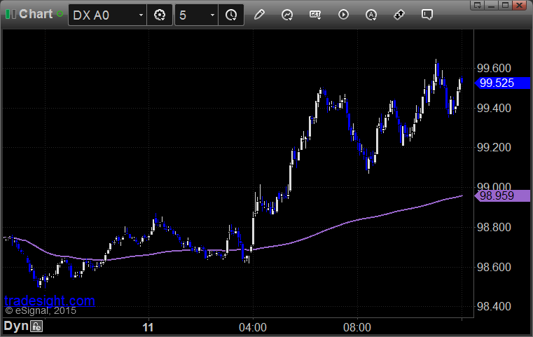 Here's a look at the US Dollar Index intraday with our market directional lines: