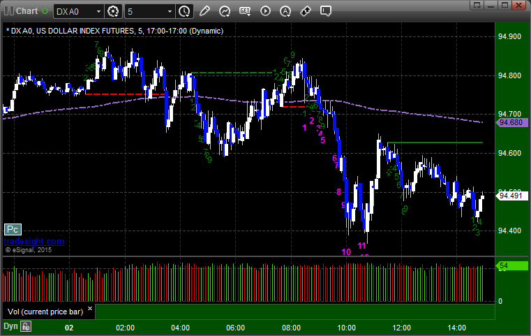 Here's a look at the US Dollar Index intraday with our market directional lines: