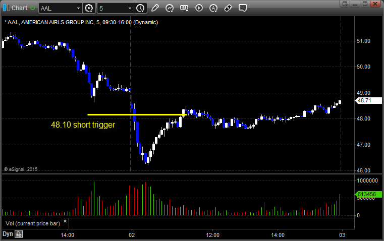 From the Messenger/Tradesight_st Twitter Feed, Rich's AAL triggered short (with market support) and worked nicely: