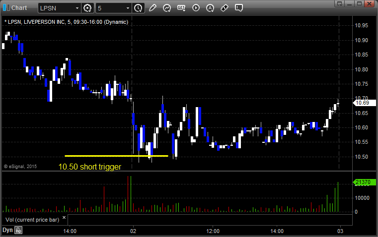 From the report, LPSN triggered short (with market support) and didn't work, but as we said in the Lab, the stock was way too thin at the time of the trade to trigger. Happens sometimes: