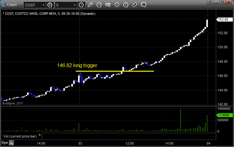 From the report, COST triggered long (with market support) and worked great,I ended up with $5.50 gain to the final exit: