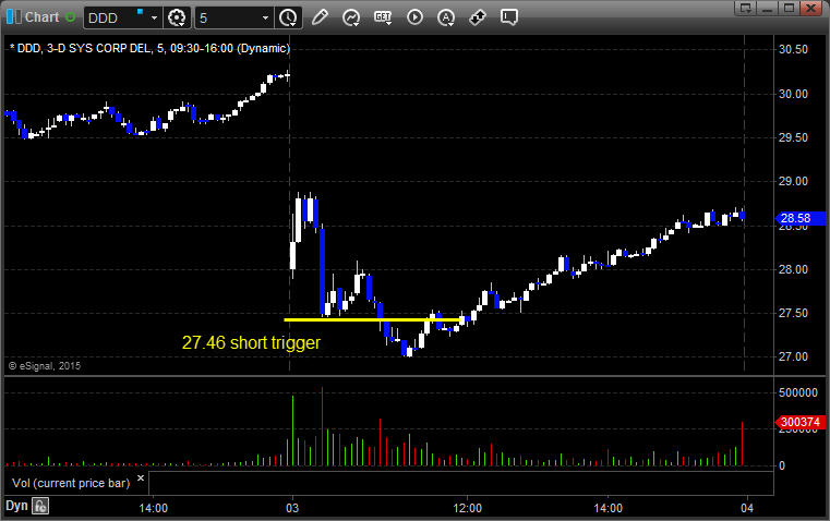 With each stock's recap, we will include a (with market support) or (without market support) tag, designating whether the trade triggered with or without market directional support at the time. Anything in the first five minutes will be considered WITHOUT market support because market direction cannot be determined that early. ETF calls do not require market support, and are thus either winners or losers.