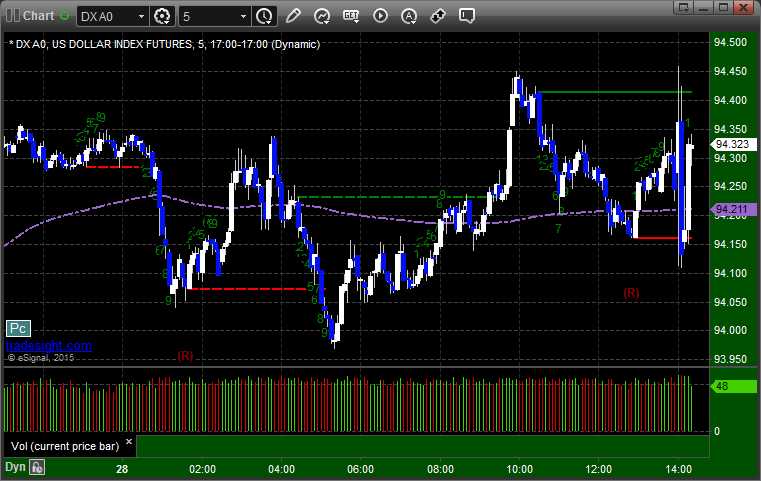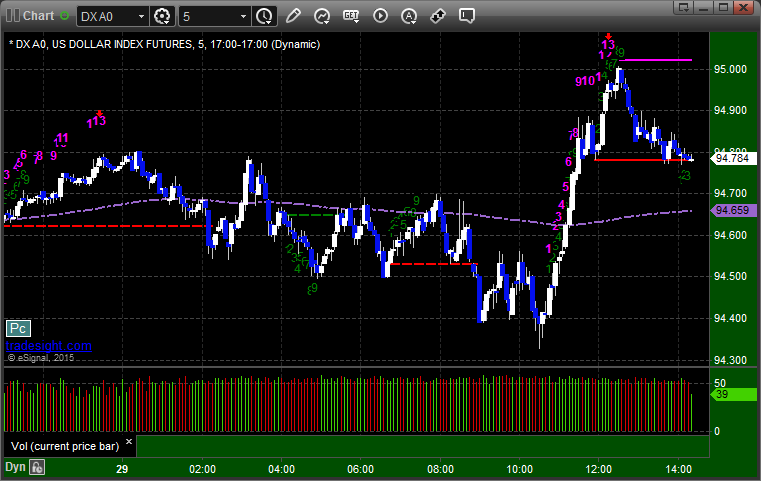 Here's a look at the US Dollar Index intraday with our market directional lines: