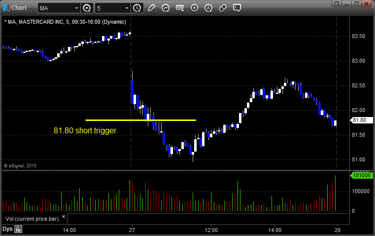With each stock's recap, we will include a (with market support) or (without market support) tag, designating whether the trade triggered with or without market directional support at the time. Anything in the first five minutes will be considered WITHOUT market support because market direction cannot be determined that early. ETF calls do not require market support, and are thus either winners or losers.