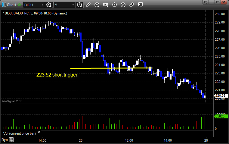 BIDU triggered short (with market support) and worked: