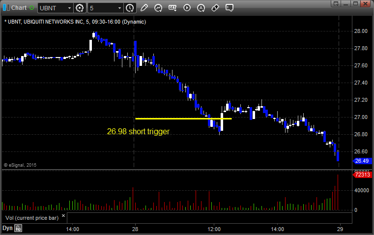From the report, UBNT triggered short (with market support) and worked: