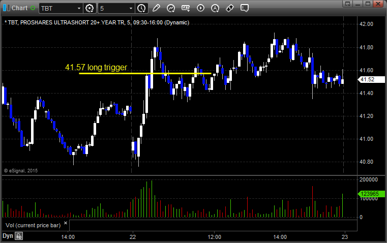 From the Messenger/Tradesight_st Twitter Feed, Rich's TBT triggered long (ETF, so no market support needed) by a penny and didn't work: