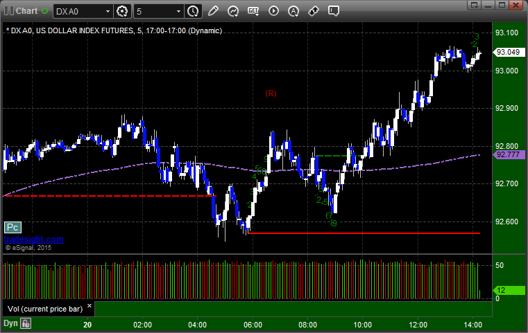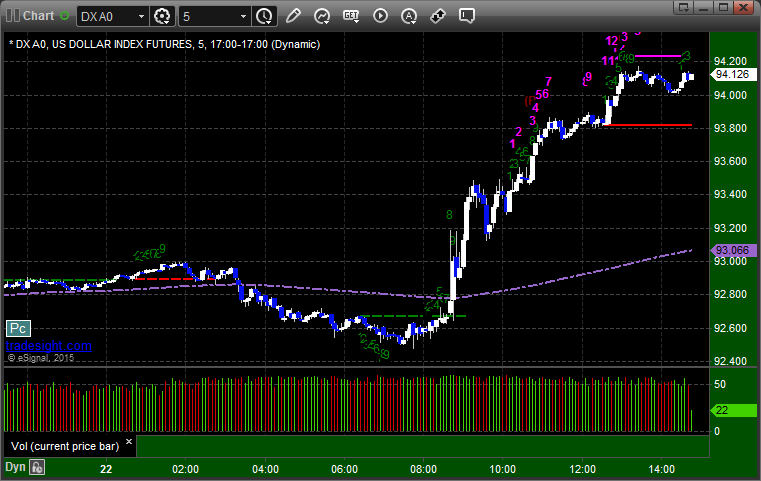 Here's a look at the US Dollar Index intraday with our market directional lines: