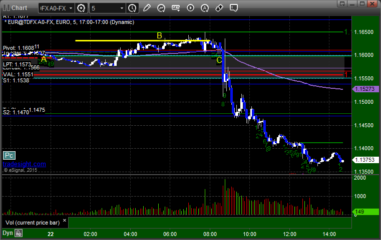 Triggered short at A, hit first target at B, lowered stop twice and stopped final piece at C over 1.1500 for almost 100 pips: