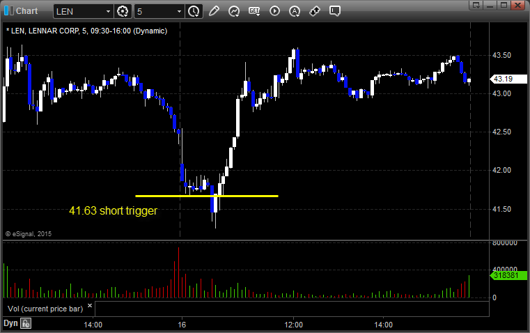 From the Messenger/Tradesight_st Twitter Feed, Rich's LEN triggered short (with market support) and worked enough for a partial: