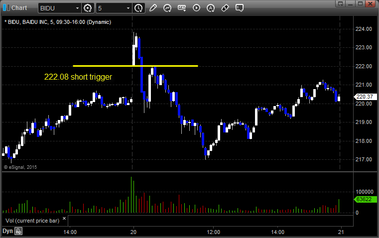 BIDU triggered short (with market support) and worked: