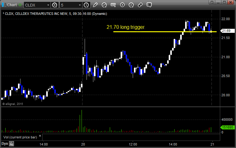 From the report, CLDX triggered long (with market support) and worked: