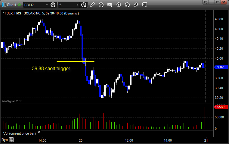FSLR triggered short (with market support) and worked enough for a partial: