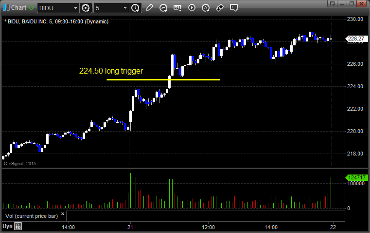 BIDU triggered long (with market support) and worked great: