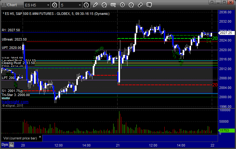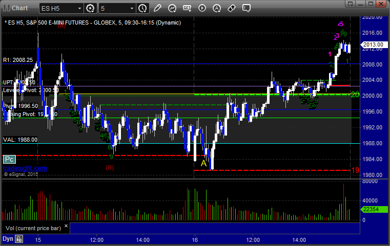Another nice session for the Opening Range plays, and then we had another call that worked a little. See the ES section below. It was pretty choppy for most of the session, as expected on options expiration. Volume never came back in the afternoon, and we closed at 1.7 billion shares, which is pretty light for expiration Friday.