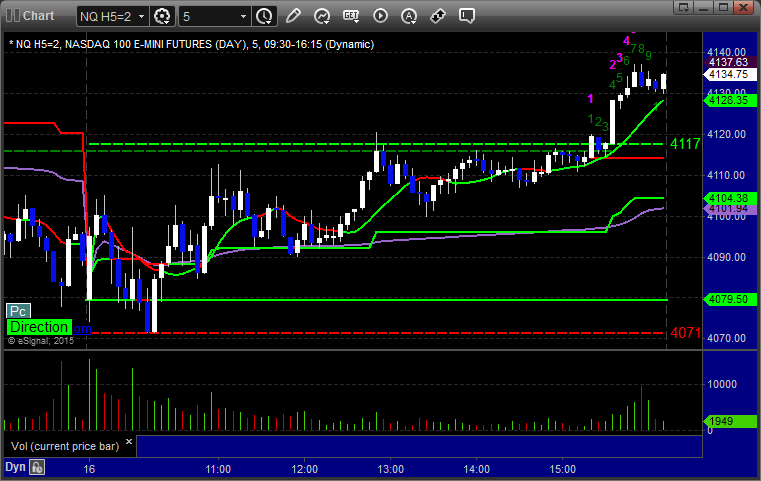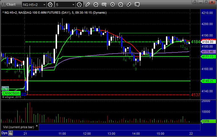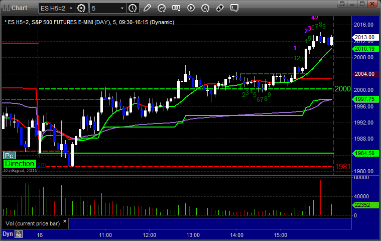 As usual, let's start by taking a look at the ES and NQ with our market directional lines, VWAP, and Comber on the 5-minute chart from today's session: